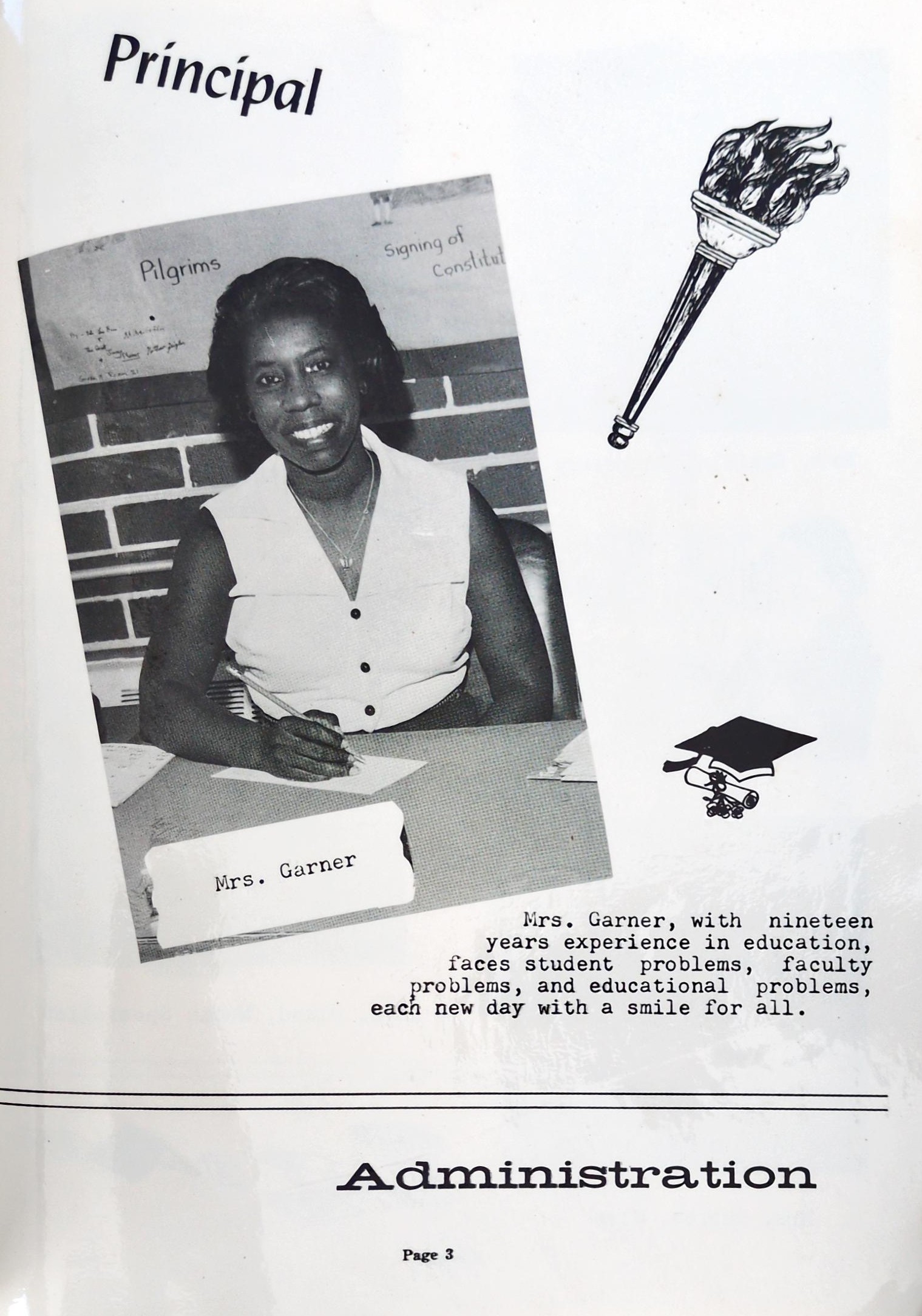 In 1968, Ms. Garner was the first Black female principal of a predominantly white elementary school, Jacksonville Beach Elementary. She helped to integrate the school, which was started by Rhoda Martin, a woman born into slavery who started the school and a church out of her home around 1905. Ms. Garner established Jacksonville Beach Elementary School as the first 6th grade center at the Beaches. In 1983 she transferred to Forest Hills Elementary (now Sallye B. Mathis) to work closer to home.